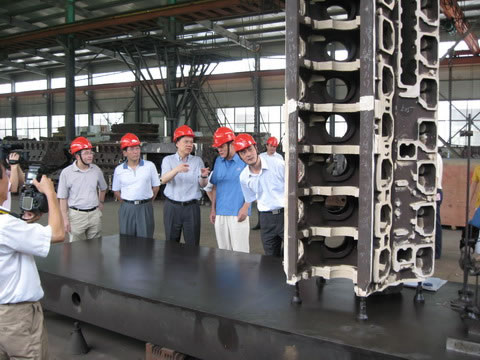 圖為陳敏爾常務副省長在集團董事長朱金根、副總方毅和杭機鑄造總經(jīng)理鄭金濤陪同下參觀鑄件成品車間現(xiàn)場。