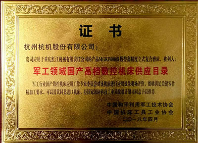軍工行業(yè)國產(chǎn)數(shù)控機床應(yīng)用工作專家委員會嚴(yán)格篩選并通過在應(yīng)用現(xiàn)場效果評價,最終確定我公司開發(fā)的MGKF600/8數(shù)控高精度立式復(fù)合磨床列入了軍工領(lǐng)域國產(chǎn)高檔數(shù)控機床供應(yīng)目錄,杭機股份將作為軍工采購國產(chǎn)機床的重點推薦企業(yè)。